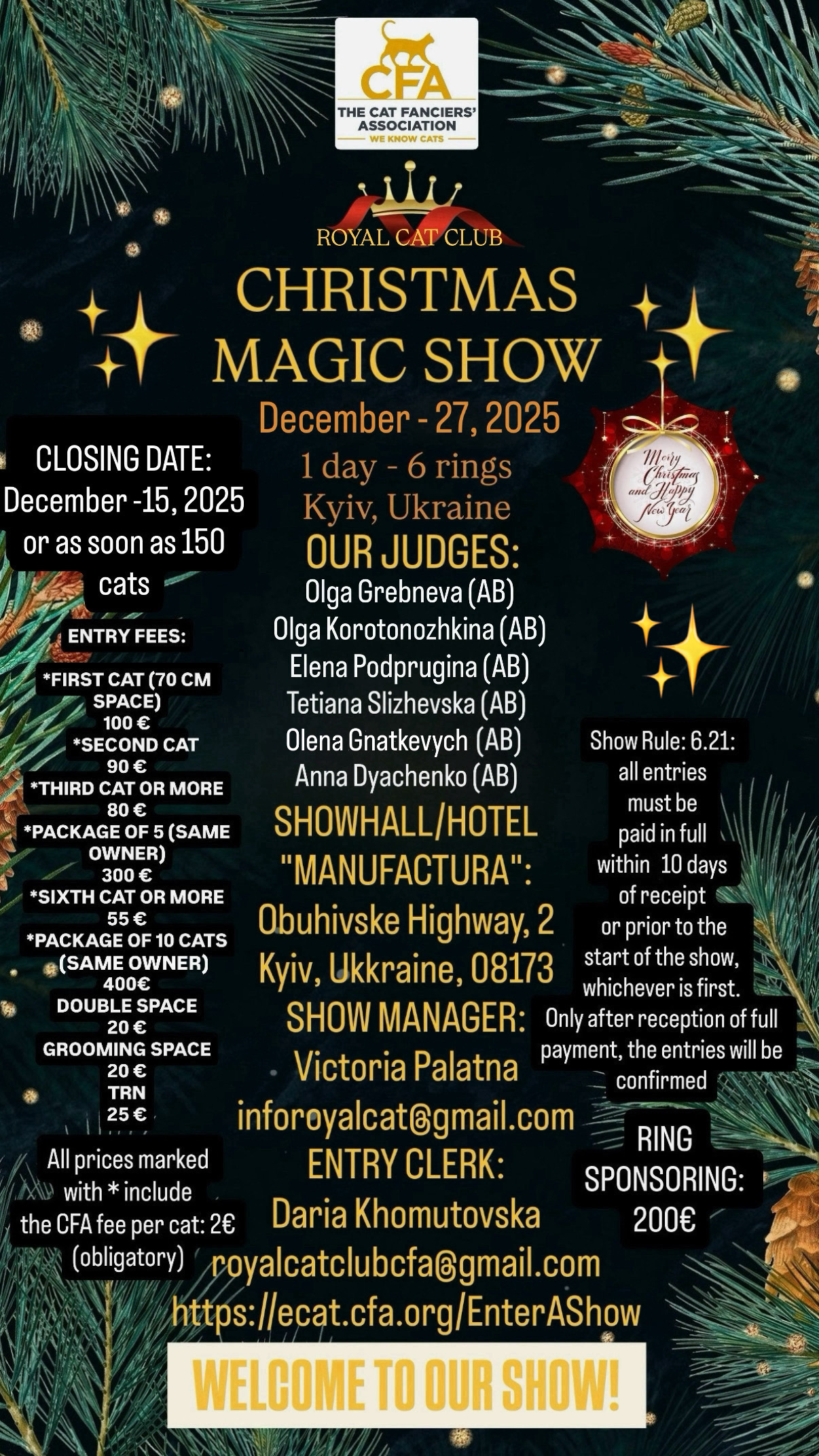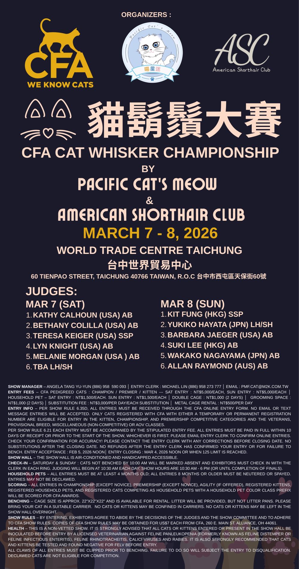** In order to list a show as “planned” on the calendar, Central Office must receive a copy of at least one signed contract from a judge